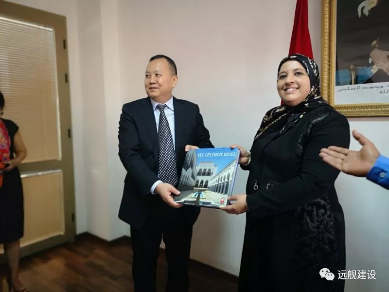 兴城投资集团总经理张俊涛、交通集团总经理王林、远舰建设集团董事长杨远见等企业家分别介绍了自己的企业发展,菲斯市分管建设的副市长,对中国成都代表团来到表示热烈欢迎,特别是习主席在举行中非论坛的今天,中国成都和菲斯两座城市举行的友好座谈意义重大,对菲斯市的发展进行介绍,并提出中、摩两国针对具体项目,推进实质性合作长期保持沟通和交流,会后互赠礼物并合影留念。