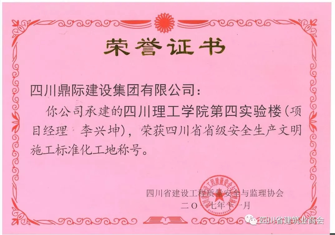 四川鼎际建设集团有限公司是经四川省工商行政管理局审核批准允许登记,经四川省建设管理委员会批准成立的国家房屋建筑施工总承包壹级资质企业,原名为四川省鼎际建筑工程有限公司。