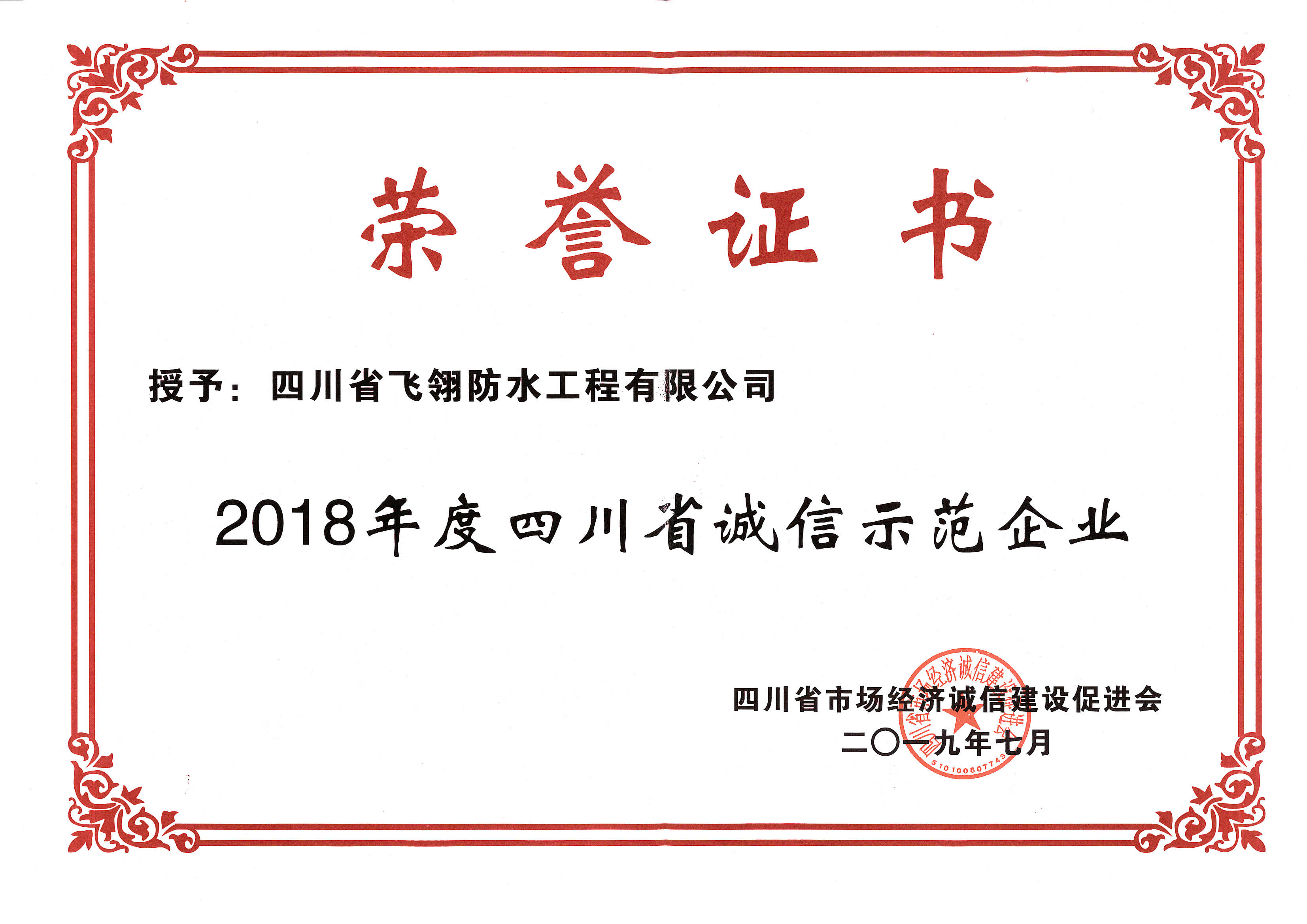 公司首批取得了全国工业产品生产许可证、安全生产许可证等相关行业证件﹑证书;拥有国家建筑业企业防水、防腐、保温工程专业承包一级资质;被四川省工商行政管理局评为四川省著名商标、四川省人民政府授予四川名牌产品称号、成都市安全生产监督管理局评为安全生产标准化三级企业;公司的质量管理体系、环境管理体系、职业健康安全管理体系已通过ISO9001-2015、ISO14001-2015、OHSAS18001-2007认证;是中国建筑防水协会理事会理事、四川省建筑防水协会副会长单位。