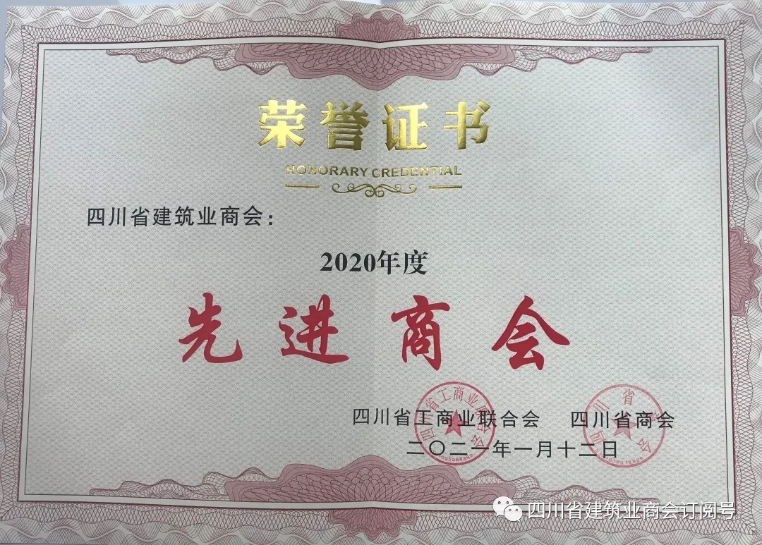 热烈祝贺四川省建筑业商会荣获“先进商会”表彰 查看详情>>为激励先进、弘扬新时代中国特色商会组织的责任担当,进一步增强商会组织的凝聚力、动员力、攻坚力。2021年1月,四川省工商业联合会通报表扬了10家商会,四川省建筑业商会被评为“2020年度先进商会”。商会自成立以来,已连续4年被评为“先进(优秀)商会”。 荣誉的获得是…