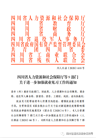 四川省人力资源和社会保障厅等9部门关于进一步加强就业见习工作的通知 查看详情>>