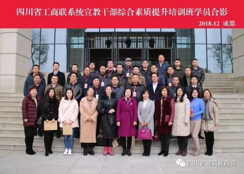 加强思想政治引领 提振发展信心——省工商联系统宣教干部综合素质提升培训班在蓉举办 查看详情>>2018年12月10日—13日,由四川省工商联主办的全省工商联系统宣教干部综合素质提升培训班在省社会主义学院举办,来自全省各市(州)工商联分管宣传教育工作负责人及省工商联各直属商会宣传工作负责人共计50余人参加此次培训。本次培训旨在学习传达全联宣教工作会议精神,总结交…