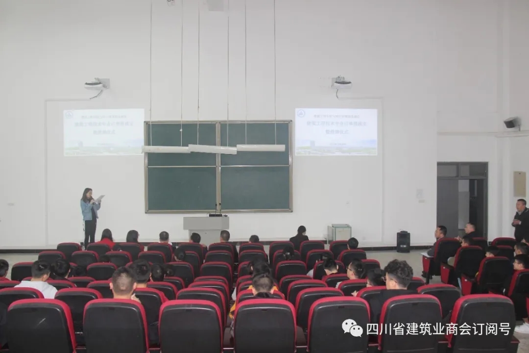 今年四川省建筑业商会与成都工业职业技术学院签订战略合作协议,并进行深度合作,共建“产学研”平台,经过几个月的充分酝酿,2020年10月20日,成都工业职业技术学院建筑工程学院与四川省建筑业商会“建筑工程技术专业”订单班正式成立并揭牌。四川省建筑业商会副会长谢合勇、郭小刚、秘书长张红、党支部书记廖子玉、外联部长衡柯洁;成都工业职业技术学院建筑工程学院院长刘强、党总支副书记杜德、副院长徐兆春、学生管理办公室主任满文正,团总支书记、订单班辅导员伍菊以及两个订单班79名学生共同参加订单班揭牌仪式。