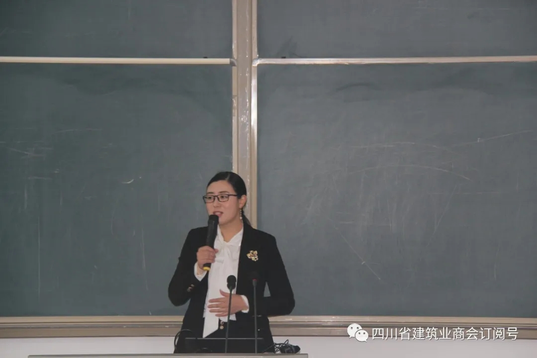 四川省建筑业商会秘书长张红介绍了商会和行业的情况以及订单班成立的背景意义,并且结合自身经历和互动形式为订单班的新生上了生动的一课,希望同学们充分利用学校和企业的双重优势,扎实学习,共创未来。