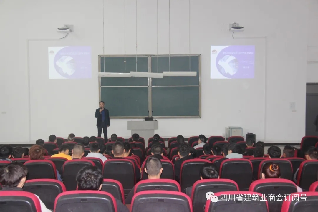 四川省建筑业商会副会长、四川鸥鹏建筑工程公司总经理谢合勇非常重视人才的培养,对于订单班的成立高度肯定,进入订单班只是一个开始,谢总鼓励同学们活到老学到老,学无止境,并为同学们带来《建筑业在国民经济中的重要地位》讲座。