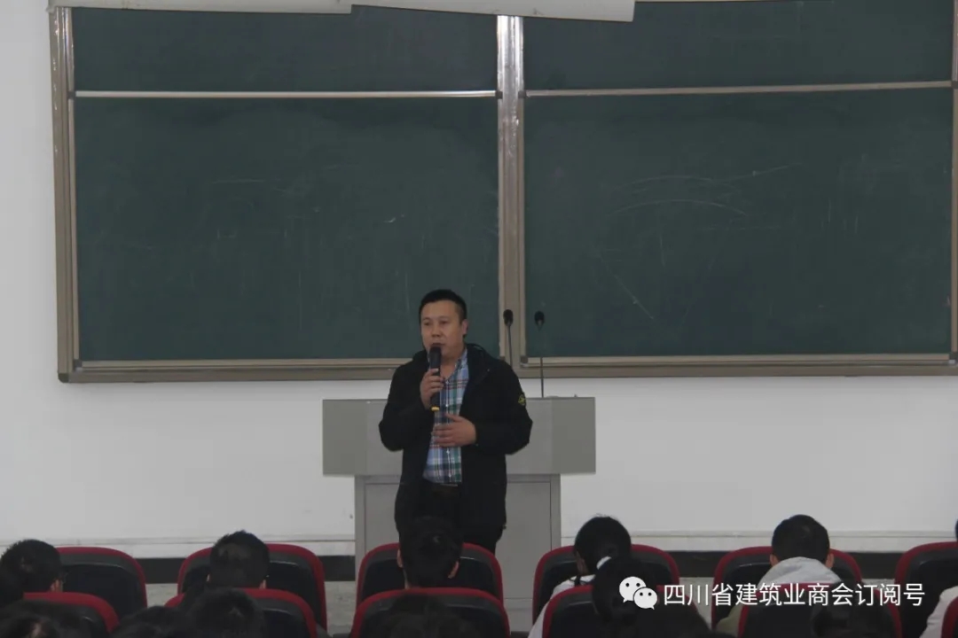 四川省建筑商会副会长、四川锦城智信建设工程有限公司总经理郭小刚以学长的身份,从自身经验分享行业现状,并激励同学们自我学习,自我自信,夯实基础,厚积薄发。