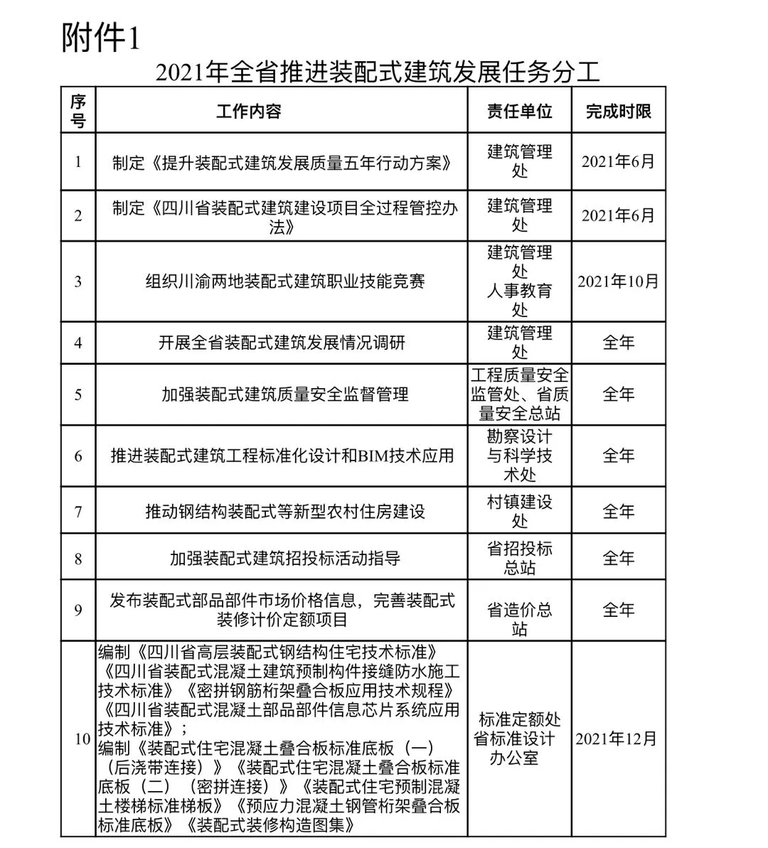 四川省住建厅住房和城乡建设厅印发关于《2021年全省建筑管理工作要点》的通知,2021年全省建筑管理工作总体思路是:全面贯彻省委十一届八次全会精神,落实全省住房城乡建设工作会部署的各项任务,坚持新发展理念,以深化建筑业供给侧结构性改革为主线,以改革创新为动力,加快转变发展方式,推动构建建筑业新发展格局,提升建筑业发展质量和效益,加快建筑强省建设。一、强化政策引领。贯彻新发展理念,编制《四川建筑业发展“十四五”规划》《四川建筑产业园区发展规划》,大力推动“1+N”省级建筑产业园区建设,支持有条件的市(州)布局一批产业功能园区。开展全省建筑业发展质量评价,研判建筑业发展态势。联合省统计局发布《2020年四川建筑业发展报告》。二、大力推动智能建造。制定《关于促进智能建造与建筑工业化协同发展的实施意见》《四川省建筑产业互联网建设指南》,引导市场建立建筑产业互联网平台,加快推进BIM技术在建筑全寿命周期的一体化集成应用。开展智能建造技术应用试点示范,建成2-5个智能建造应用场景,举办智能建造现场观摩会,推动智能建造示范应用。试点培育10家智能建造示范企业。三、提升装配式建筑发展质量。制定《提升装配式建筑发展质量五年行动方案》,建立装配式建筑发展质量评价指标体系。编制《四川省预制装配式城市下穿隧道工程技术标准》《四川省装配式混凝土建筑预制构件接缝防水施工技术标准》等地方标准,完善装配式建筑技术标准体系,拓展装配式技术运用领域。深入开展全国钢结构装配式住宅建设试点工作,加大钢结构在住宅、农房建设、老旧小区改造等领域的推广应用。开展全省装配式建筑发展情况调研,强化装配式建筑质量安全监督管理。四、积极推行工程总承包模式。开展工程总承包试点示范项目跟踪评估,完善与工程总承包相适应的招标投标、工程价款结算等配套制度。开展《四川省房屋建筑和市政工程标准设计施工总承包招标文件》宣贯,加快培育工程总承包人才队伍,培养工程总承包骨干企业。出台《关于加快推进全过程工程咨询服务发展的实施意见》,建立完善全过程工程咨询市场服务标准体系、监管体系和诚信评价体系。五、提升科技创新能力。鼓励高校、科研、设计、施工等单位建立产业技术联盟,联合开展建筑节能、绿色施工、智能建造等新技术研发和工程应用试点。提升工法、新技术应用示范项目申报、评审质量,形成一批先进技术成果标准化转化应用。引导企业加大科研投入,引进优秀专业人才,增强科技创新动能。建立科技创新信息平台,及时发布行业新技术、新产品、新工艺和项目应用信息。六、推进招标投标制度改革。全面推行招标投标交易全过程电子化和异地远程评标,落实招投标活动信息公开制度,推广使用电子保函、在线开标。积极推行中标候选人评定分离机制,推行全省统一标准招标文件。创新电子化行政监督,加快实现工程项目交易、监管数据互联共享。制定《四川省工程建设项目招标代理机构信用记录管理办法》,加大信用信息运用力度。修订《四川省工程建设项目招标代理操作规程》。 七、支持民营企业改革发展。按照《四川省民营企业雁阵培育五年行动计划(2020-2024年)》要求,培育20家行业领军领先地位的大中型民营企业。建立大型央企、国有建筑企业与民营建筑企业合作机制。支持民营企业积极参与全过程工程咨询、工程总承包试点,参与保障性住房、城镇老旧小区改造和城乡基础设施建设。制定《促进中小微企业上规模的实施方案》,引导中小企业整合优势资源,促进中小微企业上规模。八、支持企业走出去发展。召开建筑企业走出去发展座谈会。加强与外省(市)住建部门交流合作,在省外召开我省优势建筑企业出川推介会。支持工程总承包骨干企业与专业承包、劳务企业合作,共同拓展省外建筑市场。完善“四川省建筑业发展服务平台”,建立“走出去”工作激励机制,对在外开拓业绩突出的企业和个人给予表扬。九、加强建筑工人实名制管理。严格落实实名制管理制度,提高建筑工人管理服务平台基础数据及时性、准确性和完整性,提升实名制管理覆盖率。推行通过实名制管理服务信息平台对现场管理人员到岗情况进行考勤,实时掌握项目现场管理人员到岗情况,利用平台数据加强对建筑市场违法违规行为的监督管理。持续开展根治拖欠农民工工资专项行动,切实维护农民工合法权益。十、加快培育建筑产业工人队伍。研究制定《四川省加快培育新时代建筑产业工人队伍的实施方案》,深入推进建筑产业工人队伍培育试点工作,扩大试点地区。加大建筑工人技能培训、安全培训,提升建筑工人职业素质。加快建筑劳务用工制度改革,探索符合建筑行业特点的用工方式,引导现有劳务企业转型发展,大力发展专业作业企业,推动形成可复制、可推广的建筑产业工人培育模式。 十一、推进建筑市场监管公共服务平台应用。进一步完善建筑市场监管公共服务平台功能,将日常监管业务统一纳入省级平台办理,确保省级平台工程项目信息由日常业务流程产生。新建工程项目的招投标、施工图审查、施工许可、竣工验收备案等环节信息应在业务办理活动中自动实时采集,全省范围内的房屋建筑和市政基础设施工程
