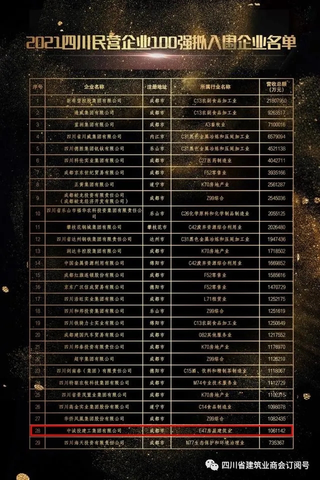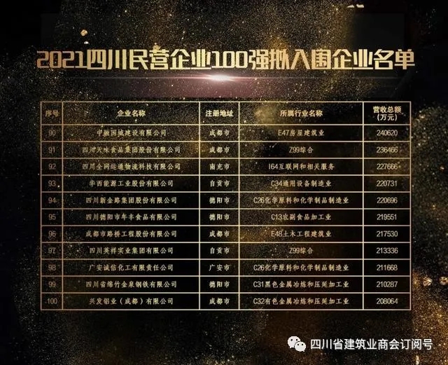 据2021四川民营企业100强调研分析报告显示,进入100强的建筑企业有5家,其中三家为我会优秀企业。