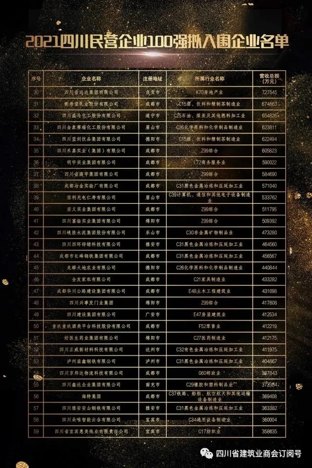 10月9日,四川省工商联在成都发布了2021四川民营企业100强榜单及调研分析报告。这是省工商联在上规模民营企业调研基础上连续四年发布“百强”榜单和相关报告,旨在展示四川民营企业发展实力,推动四川民营经济高质量发展。