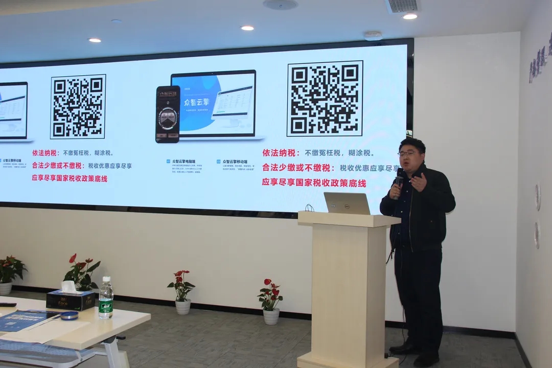 随后,万和众智财税金融大数据服务平台营销总监厍斌现场为学员介绍并演示了平台所研发的两款智能化工具——众智云擎、小智嗖嗖,应用税法精准搜索软件和政策落地智能工具,为企业精准匹配补贴政策,获得财政资金支持,解决税法运用的最后一公里。