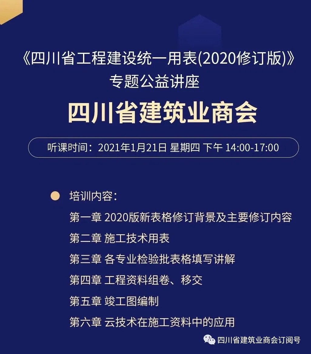 我会成功举办“四川省工程建设统一用表(2020修订版)”公益讲座 查看详情>>为保障建筑工程施工质量验收,规范资料归档管理,提高工程建设管理水平,2021年 1月21 日下午由四川省建筑业商会和北京筑业志远软件开发有限公司联合举办“四川省工程建设统一用表(2020修订版)”线上直播,共计1400余人在线观看。 直播现场邀请到中国工程建设标准化协…