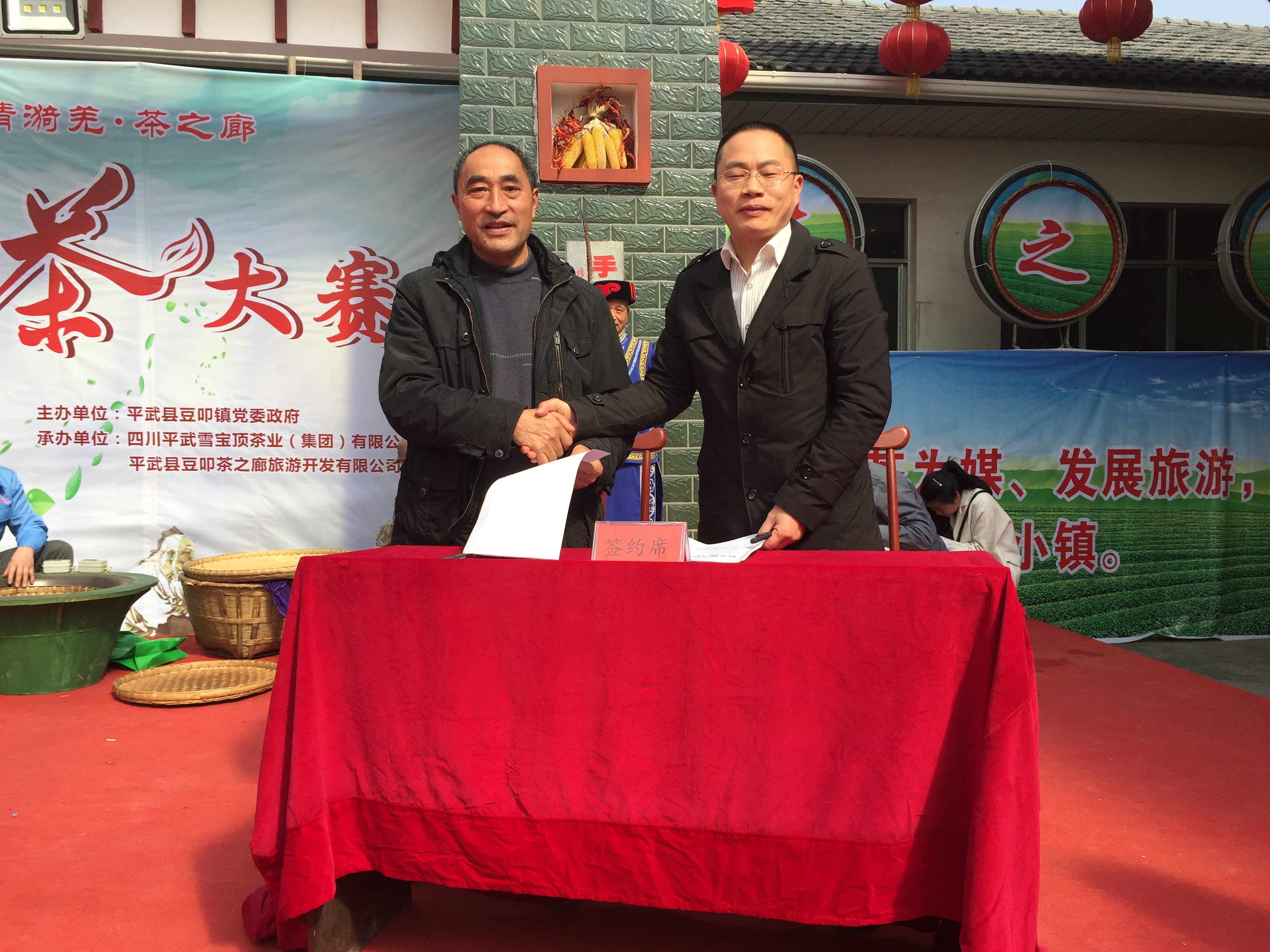 在开幕式上,一批有责任、有担当的企业积极响应“万企帮万村”精准扶贫行动,主动助力豆叩的脱贫攻坚事业。曾云勇副秘书长代表我会与其他省、市工商联帮助联系的企业都给豆叩镇贫困村签订了以高于市场价20%,购买鲜茶叶为主要帮扶内容的“村企结对帮扶及共建协议”。同时,绿康、顺龙山、龙泉、四心、天源5家本地茶业公司家公司也与豆叩镇九龙村、堡子村、松柏村、荣华村、竹坝村签订了帮扶协议。