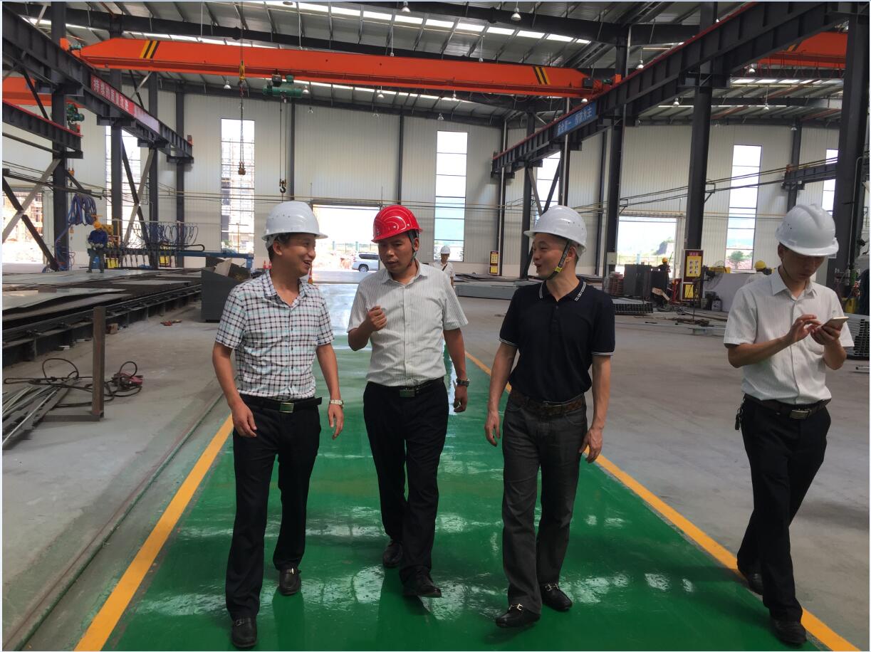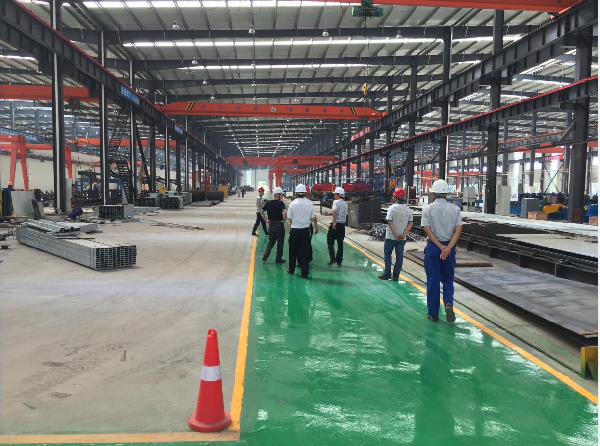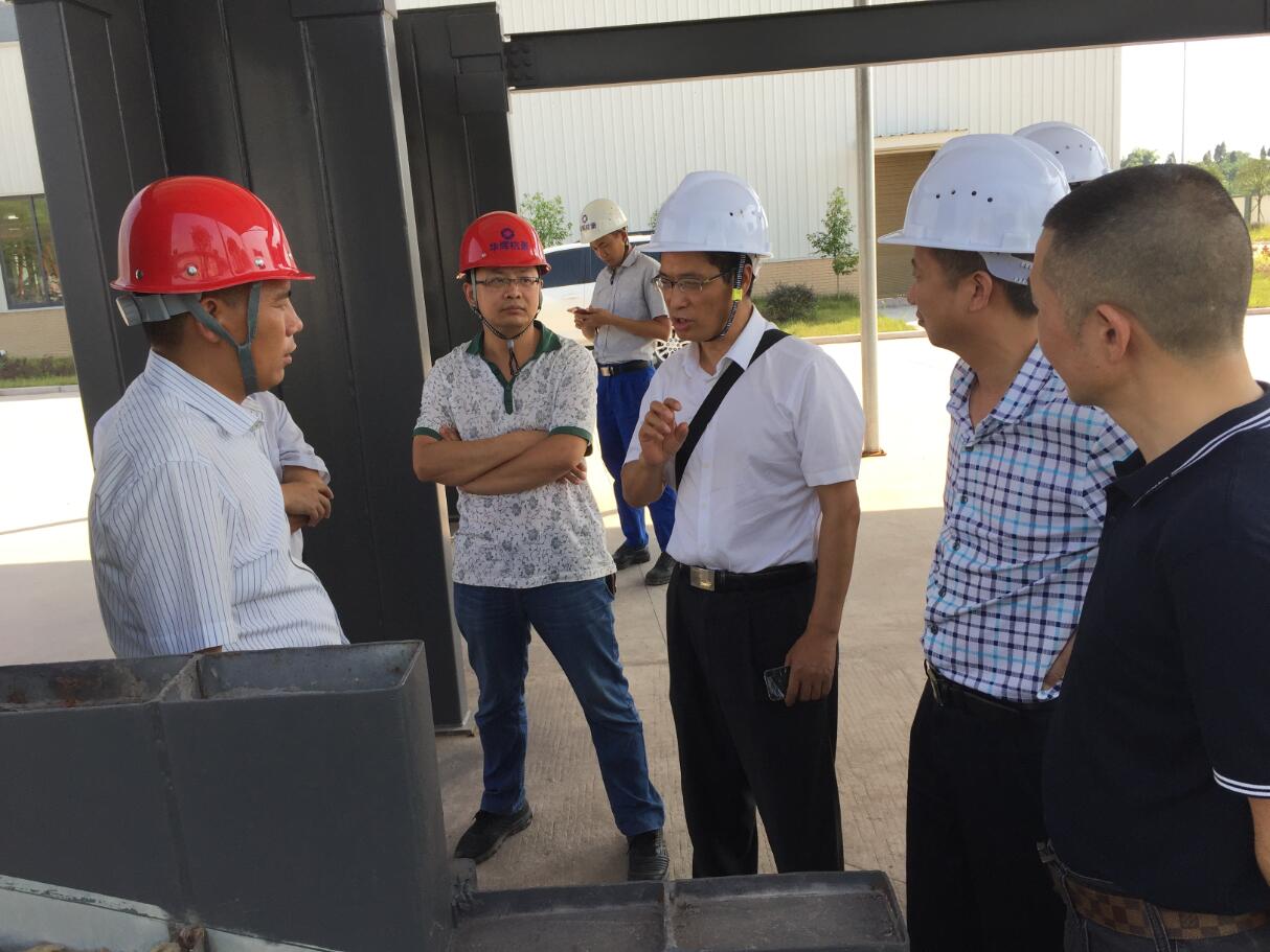继2016年9月18日四川省川联建筑业联合会秘书长何佩、副秘书长曾云勇到广安四川华辉杭萧钢构有限公司装配式建筑生产基地调研后。何佩再次带领秘书处工作人员于2017年7月10日到基地进行调研,受到四川华辉杭萧钢构有限公司董事长聂宪洪热烈欢迎。聂董向秘书处一行详细的介绍基地的建设和合同签约情况。该生产基地占地约270亩,于2017年6月开工建设,同年12月竣工完成长312米,宽120米标准化生产车间一个,现已对外签约生产40余万立方的住宅、厂房项目。