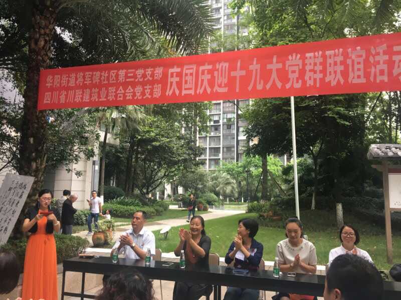 中共四川省川联建筑业联合会党支部与天府新区华阳将军碑党支部于2017.9.23.(星期六)上午9.30.至11.30.在华阳戛纳滨江小区内举办“庆国庆、迎十九大”党群联谊活动。