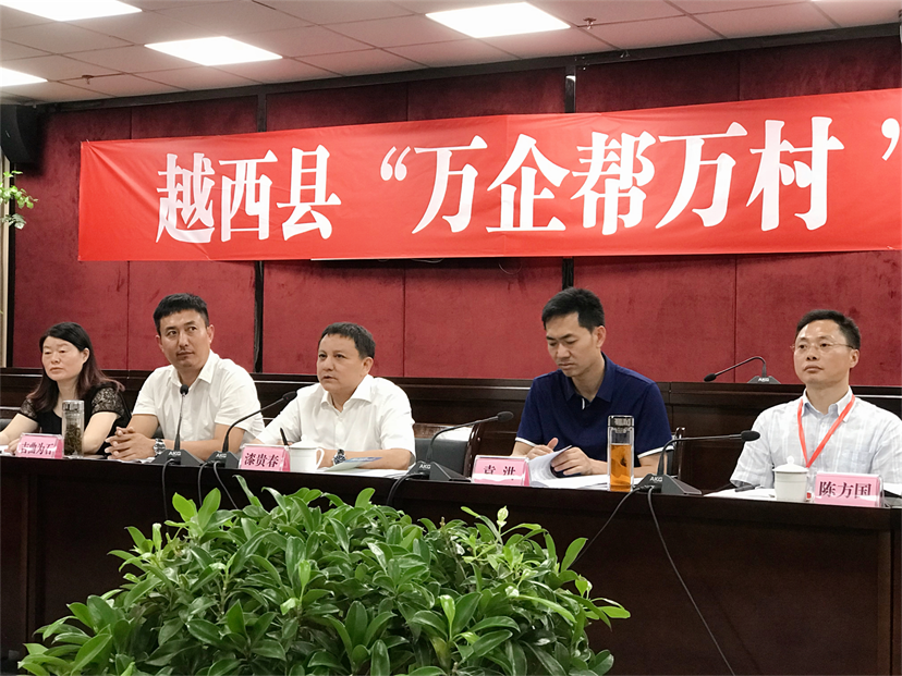 6月26日下午,越西县“万企帮万村”精准扶贫帮扶对接会在西昌召开。越西县委书记袁洪,县委常委、统战部部长李剑,县政府副县长吉曲为石,13个帮扶企业相关负责人,县级相关单位及受帮扶乡镇、村负责人参加了会议。省工商联副主席、四川省川联建筑商会会长、成都华建投资(有限)公司董事长漆贵春代表帮扶企业做交流发言。同时他号召参会企业家按照省委统战部、省工商联的关于“万企帮万村”的工作安排,积极做好越西精准扶贫的帮扶对接工作,企业尽最大努力,充分发挥自身优势,加强与帮扶村的沟通与协调,同时采取多种形式进行精准扶贫,做中国特色社会主义的优秀建设者,坚决打赢脱贫攻坚这场硬仗!