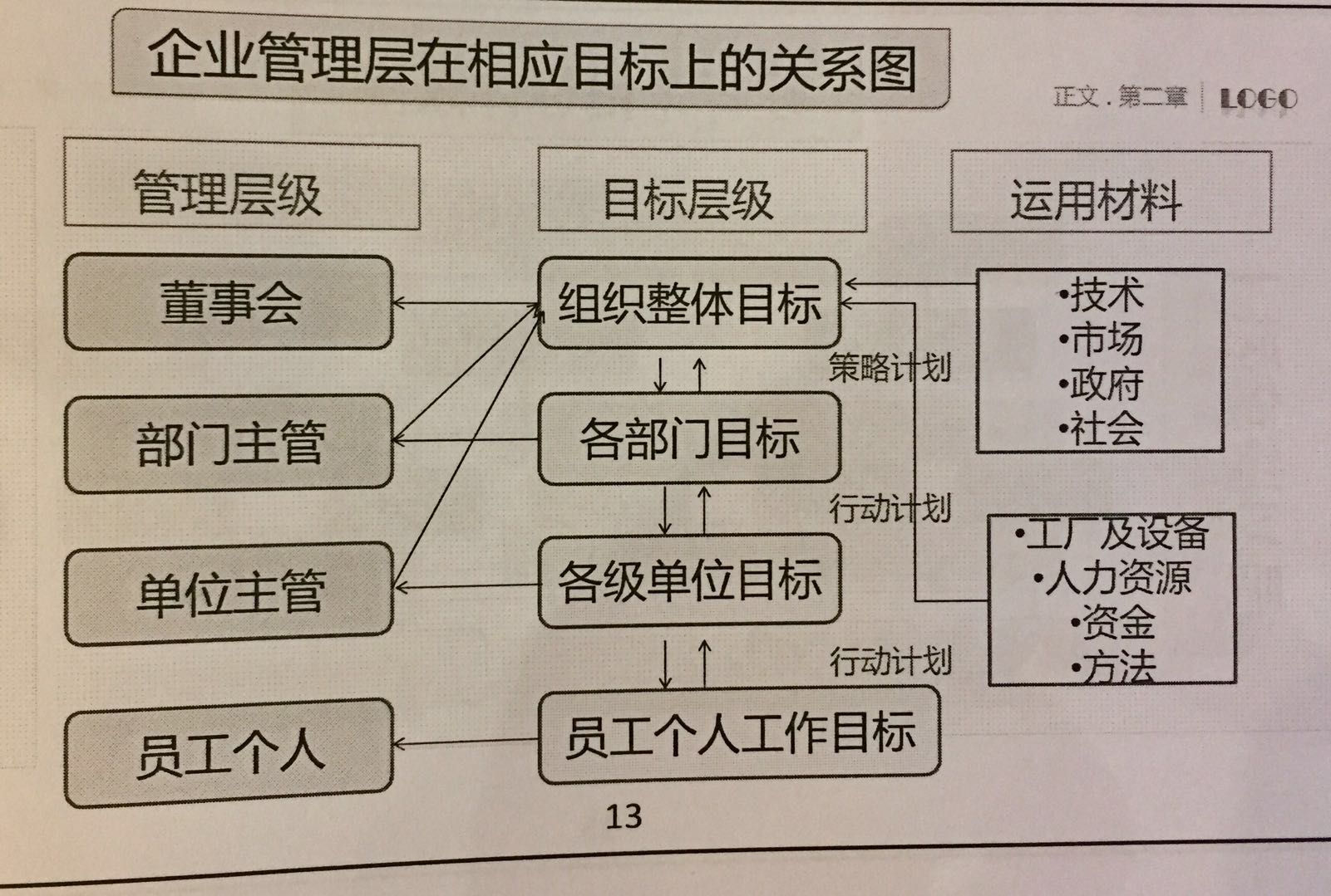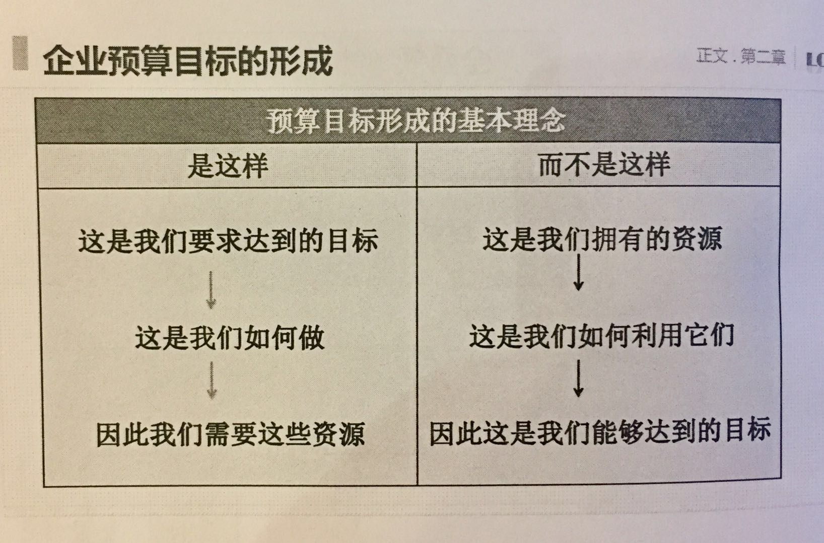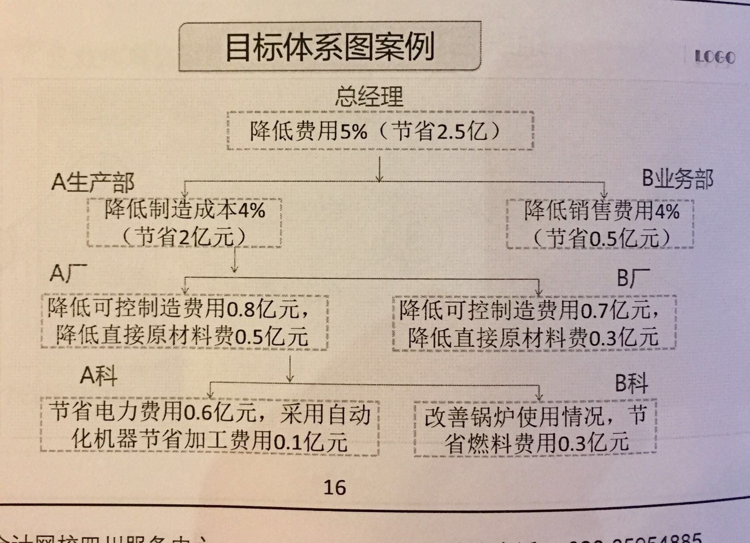 《第二章·预算目标的设定》中,李老师通过《预算目标形成的基本理念》(见下图1)、《企业管理层在相应目标上的关系图》(见下图2)、《组织目标的等级层次》(见下图3)以及《目标体系图案例》(见下图4)直观形象的讲解,引出预算指标目标值从以下几个方面确定:一是股东期望(即董事会要求的营业收入和目标利润);二是公司战略(即董事会要求的营业收入和目标利润);三是公司经理层对市场的调查与判断(即经理层预期可实现的营业收入和利润);四是基于德尔菲法的市场分析与调查(即外部专家预期可实现的营业收入和利润);五是外部标杆(即同类型、同规模公司可实现的营业收入和利润)。