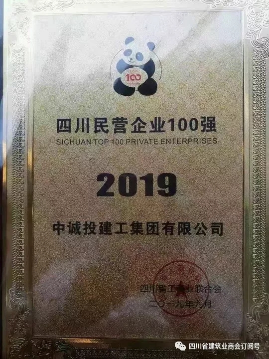 2019年9月4日,四川省工商业联合会(省商会)第十一届四次常委会议暨2019四川民营企业100强榜单发布在新华宾馆召开,会上省工商联发布“2019四川民营企业100强”榜单及“调研分析报告”。其中我会会长单位成都华阳建筑股份有限公司、副会长单位中诚投建工集团有限公司、隆生国际建设集团有限公司进入100强榜单。