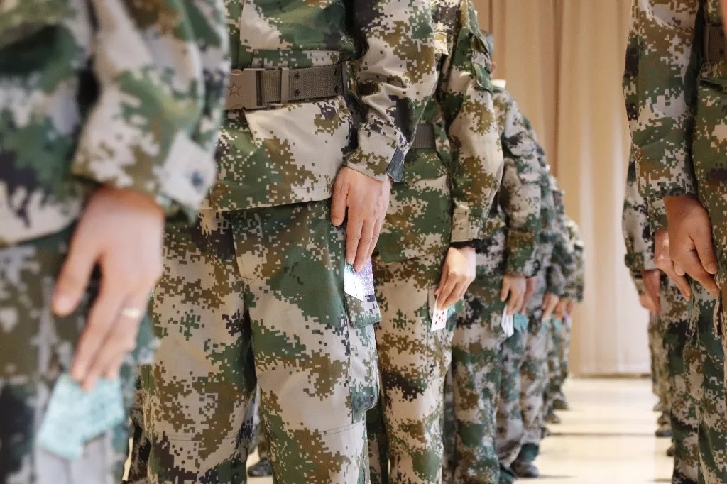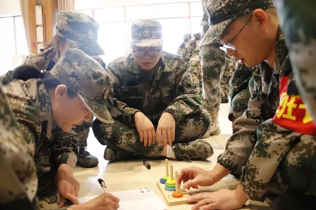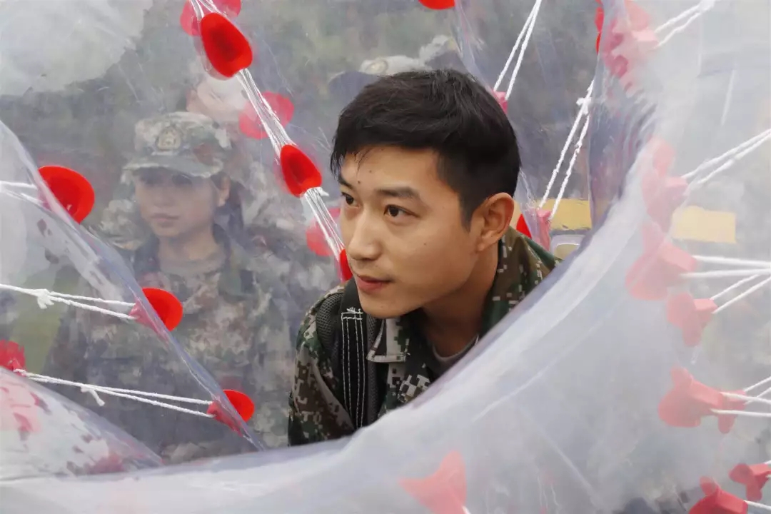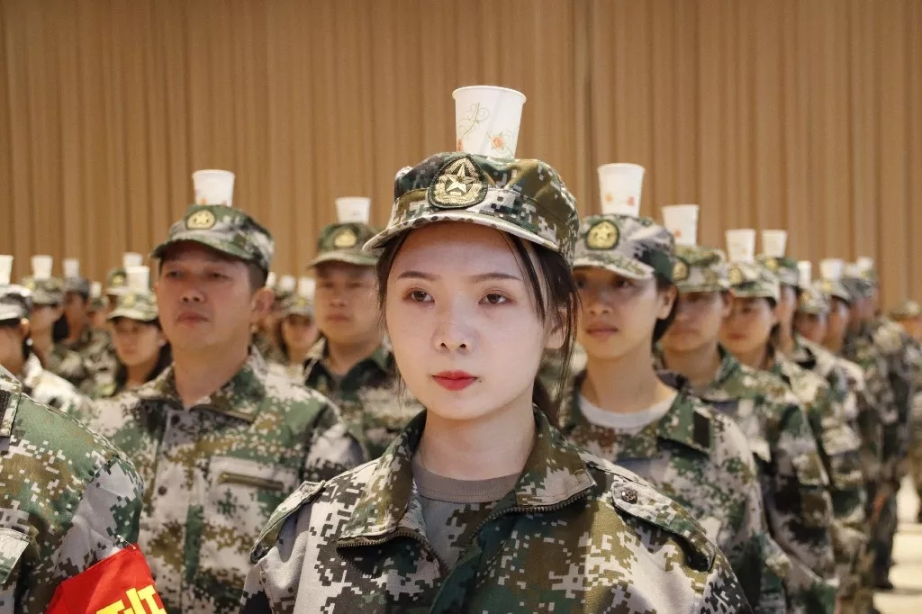 “头顶水杯,手拿纸牌”站军姿,看似轻松,想要站好却不容易。