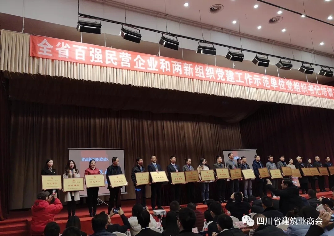 12月9日至12日,由省委组织部主办,四川西部新农村建设培训中心战旗学院承办的“全省百强民营企业和两新组织党建工作示范单位党组织书记培训班”顺利举办。开班仪式上,省委两新工委对50个省级民营企业党建示范单位和50个社会组织党建示范单位进行了授牌表彰。四川省建筑业商会秘书长张红代表商会上台接受授牌表彰。