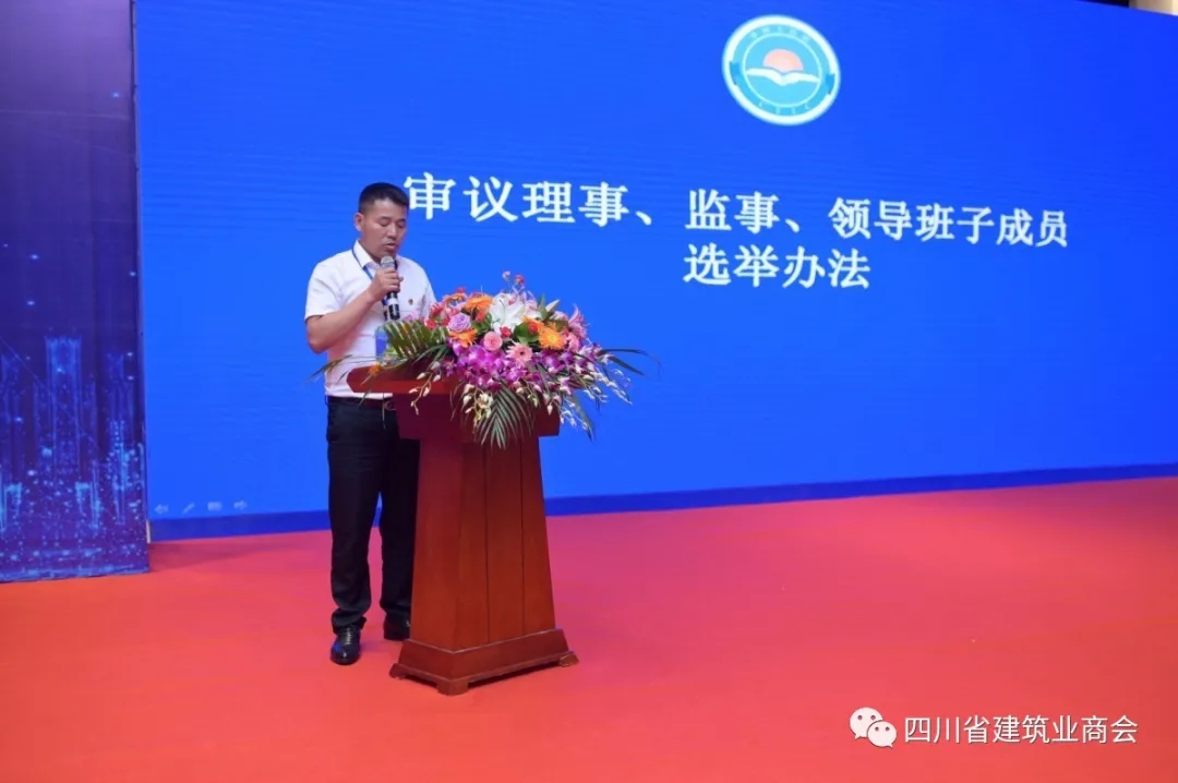 在四川省建筑业商会工程设备租赁分会正式选举前,全体会员听取了《四川省建筑业商会章程》及会费标准,审议通过了分会管理制度、分会理事会监事会选举办法。