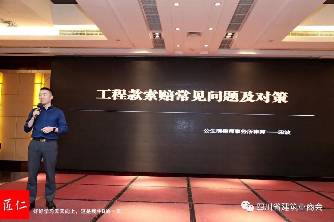 四川公生明律师事务所宋波做《工程款索赔常见问题及对策》做详细讲解。宋律师运用一系列生动翔实的案例提出在工程质量、印章管理、索赔等方面企业如何应对的专业建议