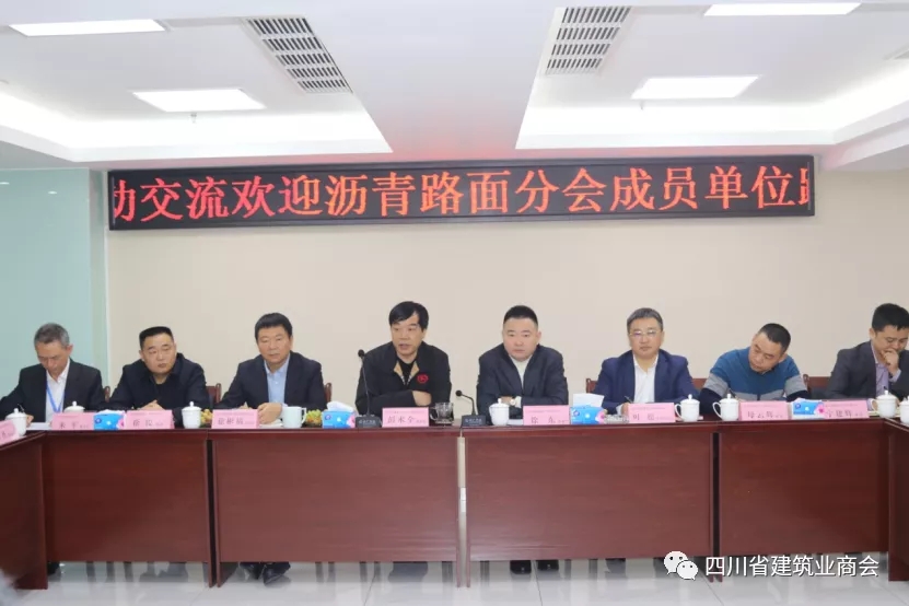 2020年10月15日上午,在四川向通建设工程责任有限公司会议室举行了交流座谈会,向通公司董事长兼分会拟任监事长彭术全介绍:公司的发展离不开向通人吃苦耐劳的精神和高效沟通的优秀团队,并希望通过分会搭建设备共享平台,形成资源互补,提高会员企业的设备利用率;朱军秘书长介绍了分会发展思路和作走访调研全省沥青路面企业的现状的工作汇报。