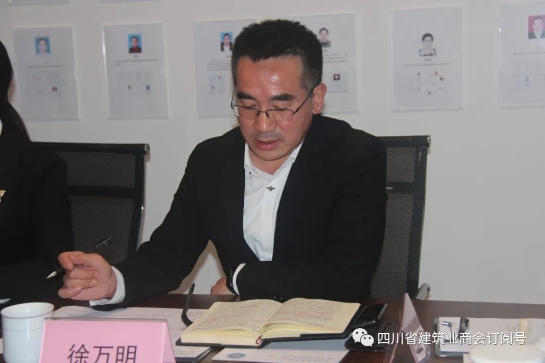 随后牛主席一行参观了四川省建筑业商会工程设备租赁分会和成都市建筑行业商会,并到会长单位成都华建投资(集团)有限公司进一步交流,会长漆贵春介绍了企业的党建、扶贫工作的开展和作为会长单位的政治引领工作,牛主席对漆会长的旗帜作用好,党建引领好,秘书班子好,管理规范好,参政议政好高度赞扬。