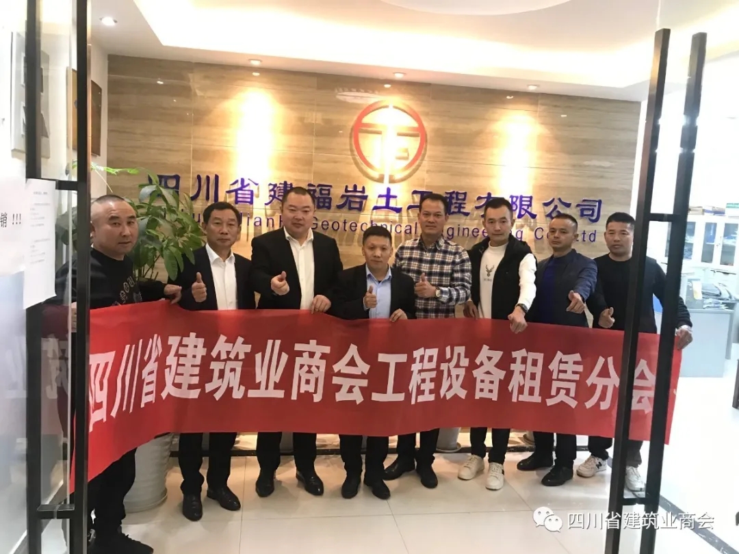 2020年11月9日四川省建筑业商会工程设备租赁分会会长何均、杜于斌、邬永、刘楷、陈开彬、理事李彪、郑梁及秘书处一行走访常务副会长单位四川省建福岩土工程有限公司,董事长邱福全、助理陈海文参加座谈会议。邱董将公司快速稳健发展历程作了分享;参会领导对商会工作务实性以及提升秘书处业务能力等工作作了指示。