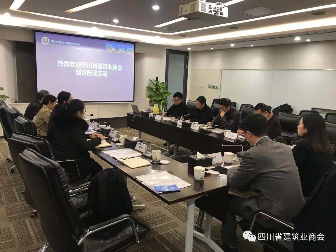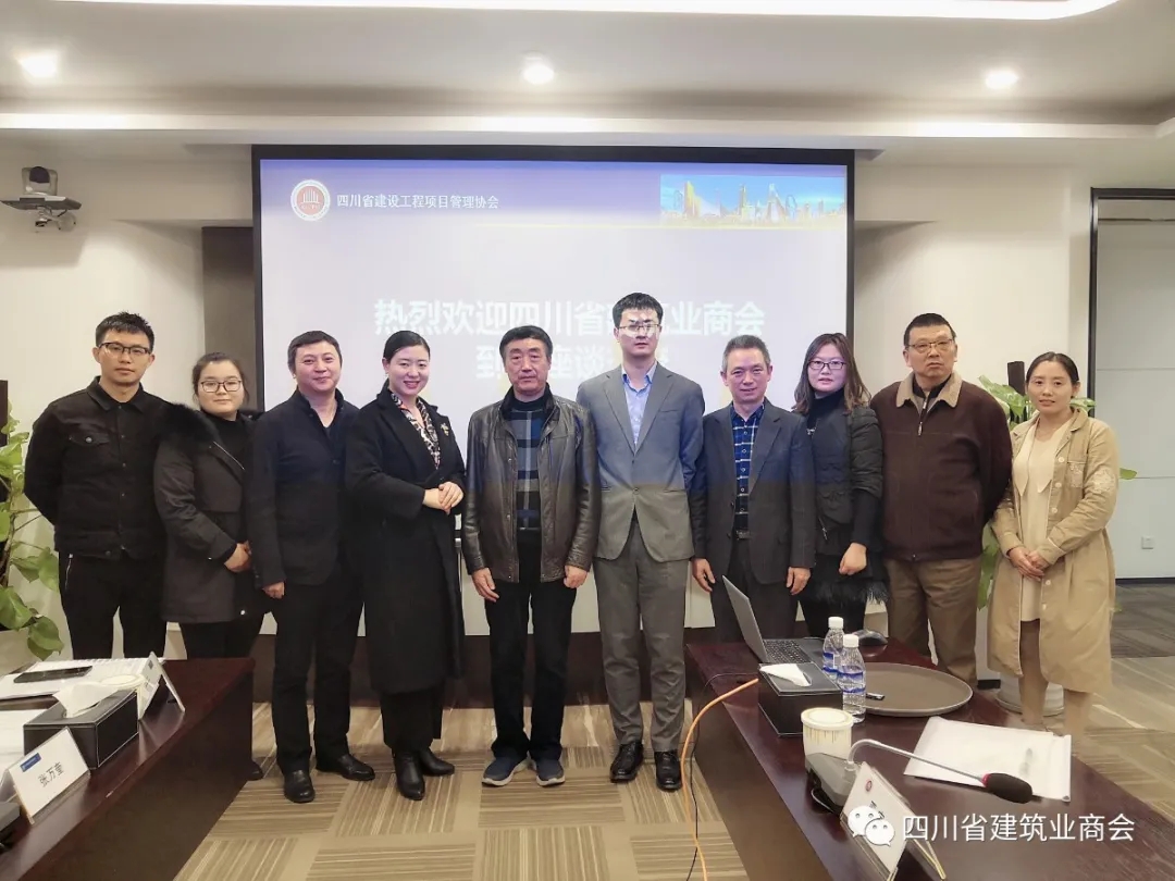 2020年11月24日下午,四川省建筑业商会秘书长张红、党支部书记廖子玉、沥青路面分会秘书长朱军、工程设备租赁分会副秘书长魏琳芸、智能装配式建筑分会办公室主任陈春燕一行到四川省建设工程项目管理协会座谈交流。协会会长车志军,BIM/CIM分会秘书长龚颖、副秘书长王宏、秘书长助理严宇、建筑信息技术员雷鹏,四川天府银行成都江汉支行行长李帅参加座谈。
