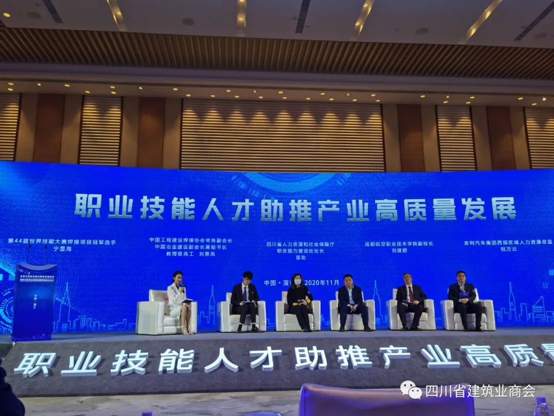 最后,四川省人社厅职业能力建设处雷劲处长、中国工程建设焊接协会常务副会长兼秘书长刘景凤、成都航空职业技术学院副校长刘建超、吉利汽车集团西部区域人力资源总监祝万云等五位嘉宾与主持人就“职业技能人才助推产业高质量发展”进行对话探讨,并回答现场问题。