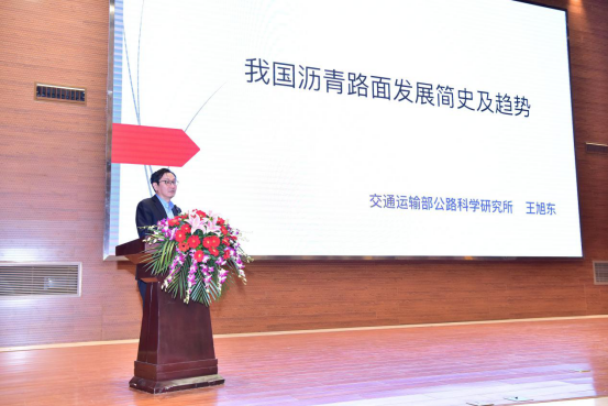 中国公路学会专家委员会委员、交通运输部公路科学研究所路面专业方向首席研究院王旭东作《我国沥青路面发展简史和趋势》主题分享。