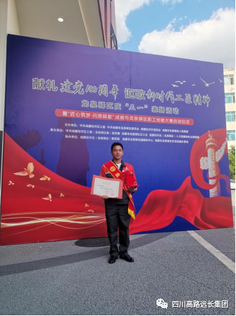 在第132个“五一”国际劳动节来临前夕,四川省建筑业商会沥青路面分会常务副会长单位—四川高路远长集团有限公司工程部沥青路面摊铺机机长黄桃同志,经过层层推荐和遴选及专家评审小组综合评定,从上千名参评选手中脱颖而出,被中共成都经开区工委、成都市龙泉驿区委、成都经开区管委会、成都市龙泉驿区人民政府授予“驿都工匠”称号。于4月26日,在龙泉驿区举办的“献礼党建100周年,讴歌新时代工匠精神”、庆“五一”表扬活动暨“匠心筑梦▪问鼎驿都”职工技能大赛活动启动仪式上颁发了“荣誉证书”,接受了大家的礼赞。