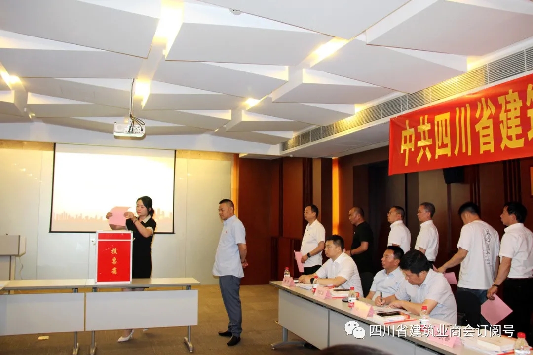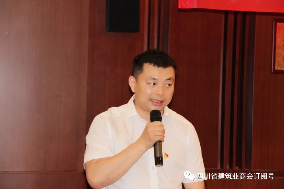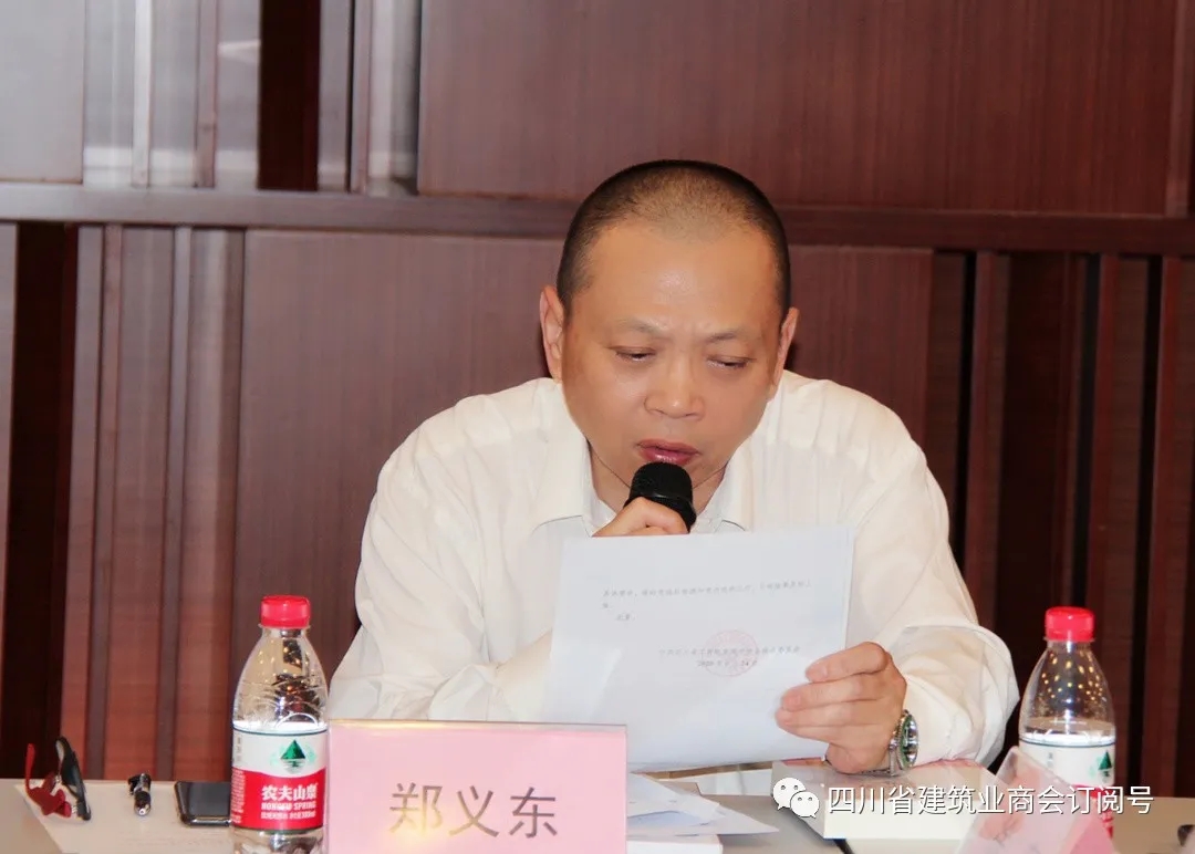 四川省工商联二级调研员郑义东在会上宣读联合党委《关于同意成立中共四川省建筑业商会委员会的批复》(川联委发〔2020〕10号)和党员代表大会选举办法(草案)。