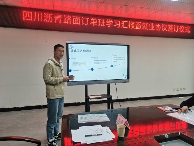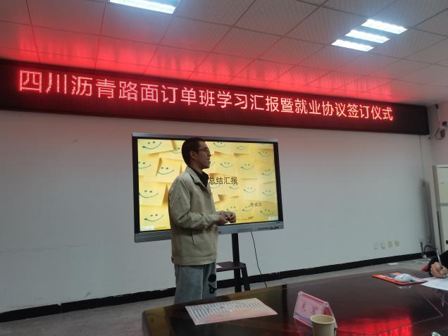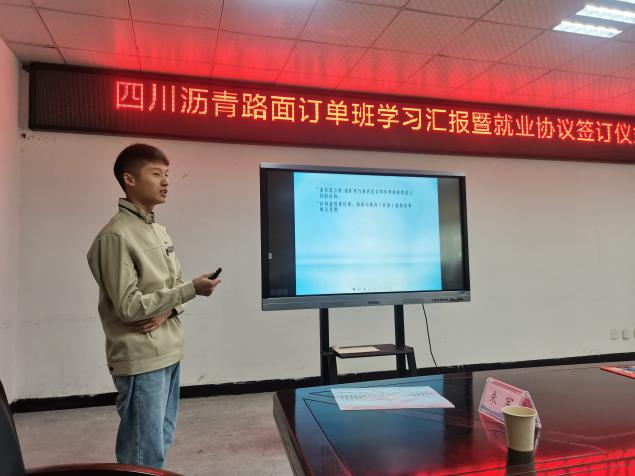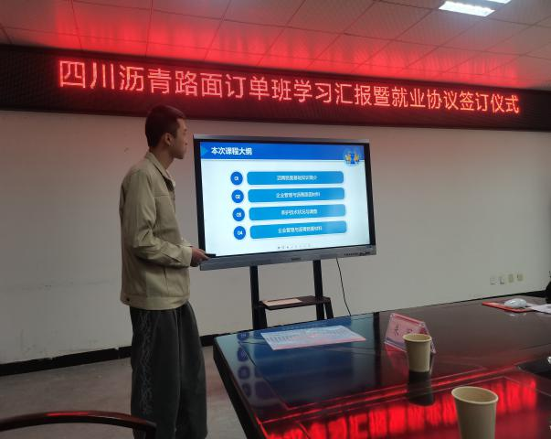 本次四川沥青路面行业订单班是我会与四川交通职业技术学院合作首届开班(第一期),学院和商会着力于探索理论加实践再加理论的教学方式,专家委员授课主要围绕为沥青路面企业培养适用型的人才;本次的学习汇报及就业协议的签订也标志着订单班学生的专业素养在为期两个月的学习中已得到明显的提升和补充,也是商会创新服务模式,务实为会员企业服务的典范。
