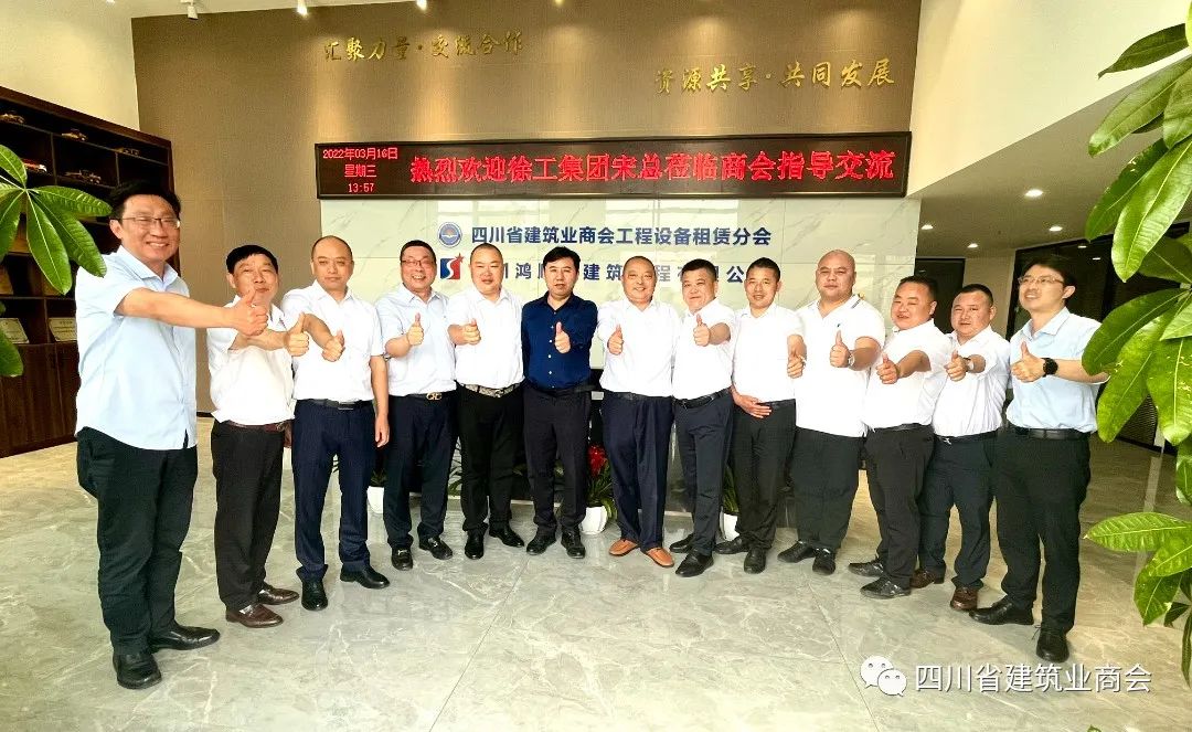 2022年3月16日上午,徐工集团副总经理、徐工挖机党委书记、总经理宋之克一行到四川省建筑业商会工程设备租赁分会座谈交流。商会会长何均、监事长张中才、常务副会长宋思根、唐真富、邬永、林双武,副会长何彪及秘书处人员参加本次座谈,秘书长韩勇主持本次交流会。